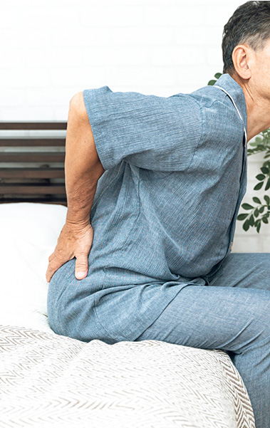 坐骨神経痛は、脊柱管狭窄症や椎間板ヘルニア、変形性腰椎症などが原因となる場合があります。高齢者には、臀部の梨状筋が坐骨神経を圧迫することで発生する「梨状筋症候群」もあります。